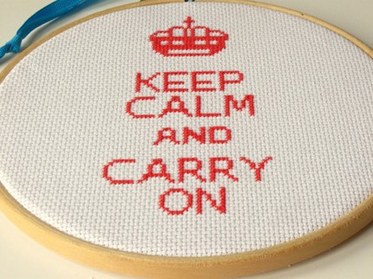 My favorite cross stitch purveyor is Slipcover Your Life over at Etsy. You can buy a complete kit with hoop, thread, pattern and all or simply download a PDF file to get started right away with your own materials. I just nabbed the Keep Calm and Carry On Kit. Let’s hope it will help me cross more things off my to-do list!
